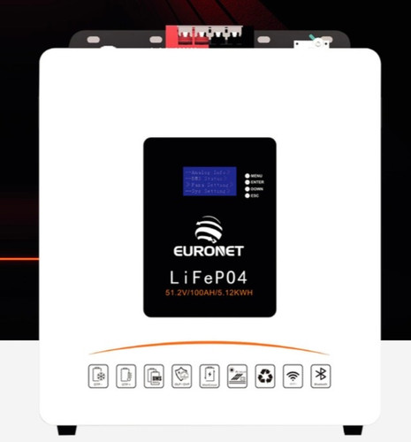 باتریهای لیتیومی یورونت (Euronet) برای سیستمهای خورشیدی، یوپیاس و ذخیره انرژی طراحی شدهاند. این باتریها معمولاً با ولتاژ ۴۸ یا ۵۱.۲ ولت و ظرفیت ۲۰۰ تا ۳۰۰ آمپرساعت عرضه میشوند. از نوع LiFePO₄ بوده و عمر طولانی (بیش از ۶۰۰۰ سیکل، حدود ۱۰ سال) دارند. وزن کم، راندمان بالا و سیستم مدیریت هوشمند (BMS) از مزایای آنهاست. پیش از خرید باید ولتاژ و ظرفیت باتری با دستگاههایتان سازگار باشد و شرایط نصب (دما، تهویه، رطوبت) رعایت شود