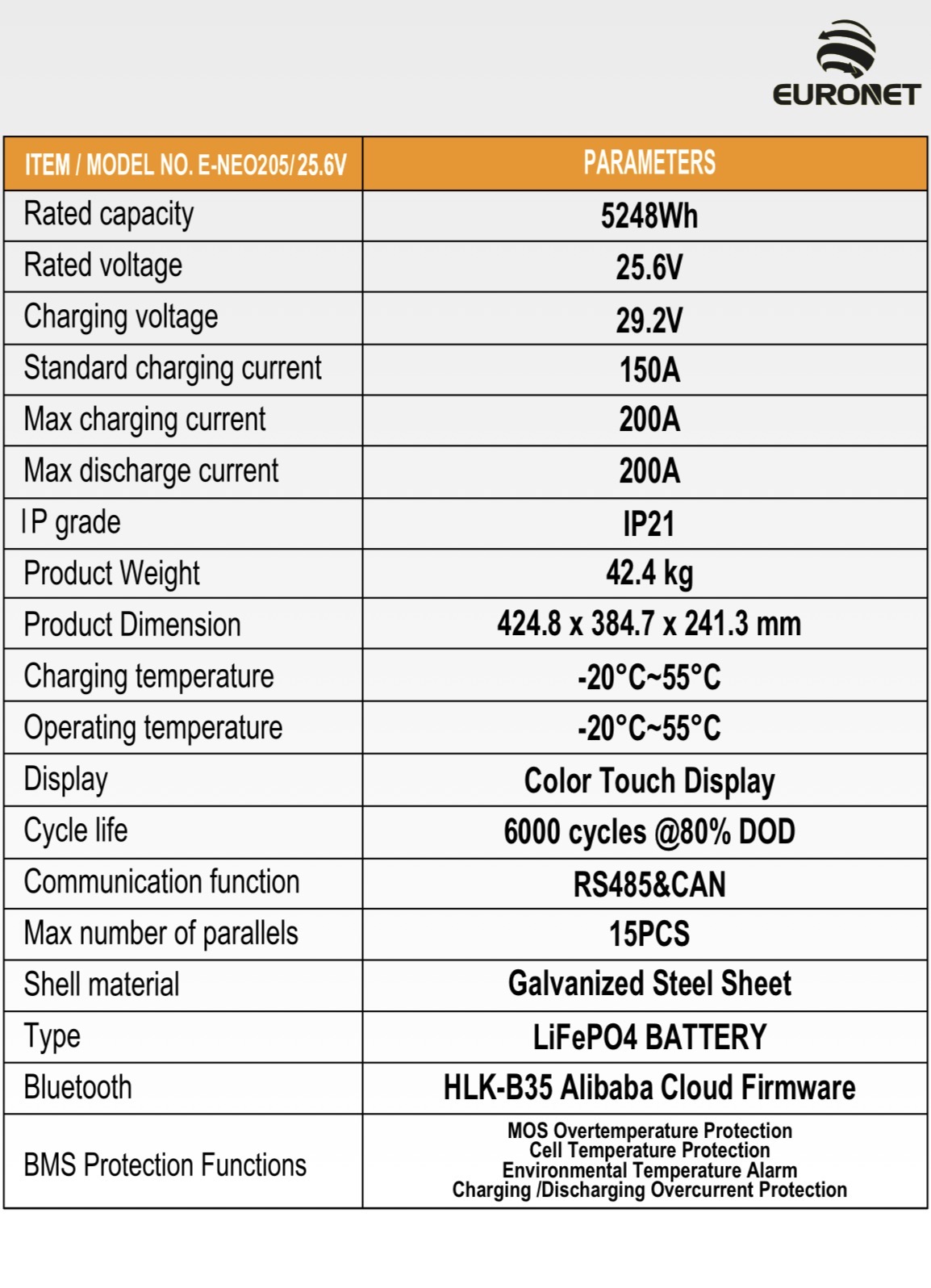 EURONET SMART LITHUM BATTERY NEO 25.6V 205AH/2.56KWH