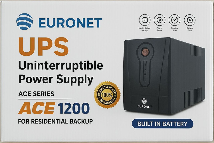 ذخیرهساز برق یورونت 1200 ولت آمپر (UPS EURONET 1200VA) یک دستگاه Line Interactive است که برای محافظت از تجهیزات الکترونیکی در برابر نوسانات برق، قطع ناگهانی برق و افزایش یا کاهش ولتاژ طراحی شده است. این UPS با استفاده از تکنولوژی AVR (Automatic Voltage Regulation) قادر است ولتاژ ورودی را تثبیت کند و برق خروجی پایدار و مطمئنی را برای دستگاههای حساس فراهم کند.
